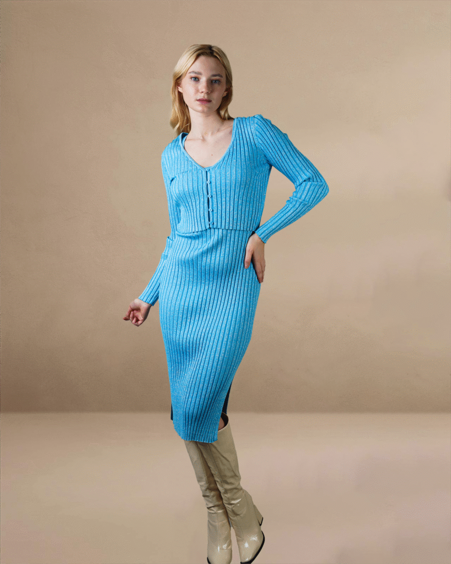 This Blow Cardigan is a beautifully tailored light blue cardigan that blends elegance with everyday wear. Designed in a soft knit with a button-down front, long sleeves, and a textured pattern, it flatters the silhouette while staying cozy. This versatile blue cardigan for women adds a chic layer to casual outfits and semi-formal looks, making it a must-have the blue cardigan from vero moda cardigan colelction for every wardrobe.